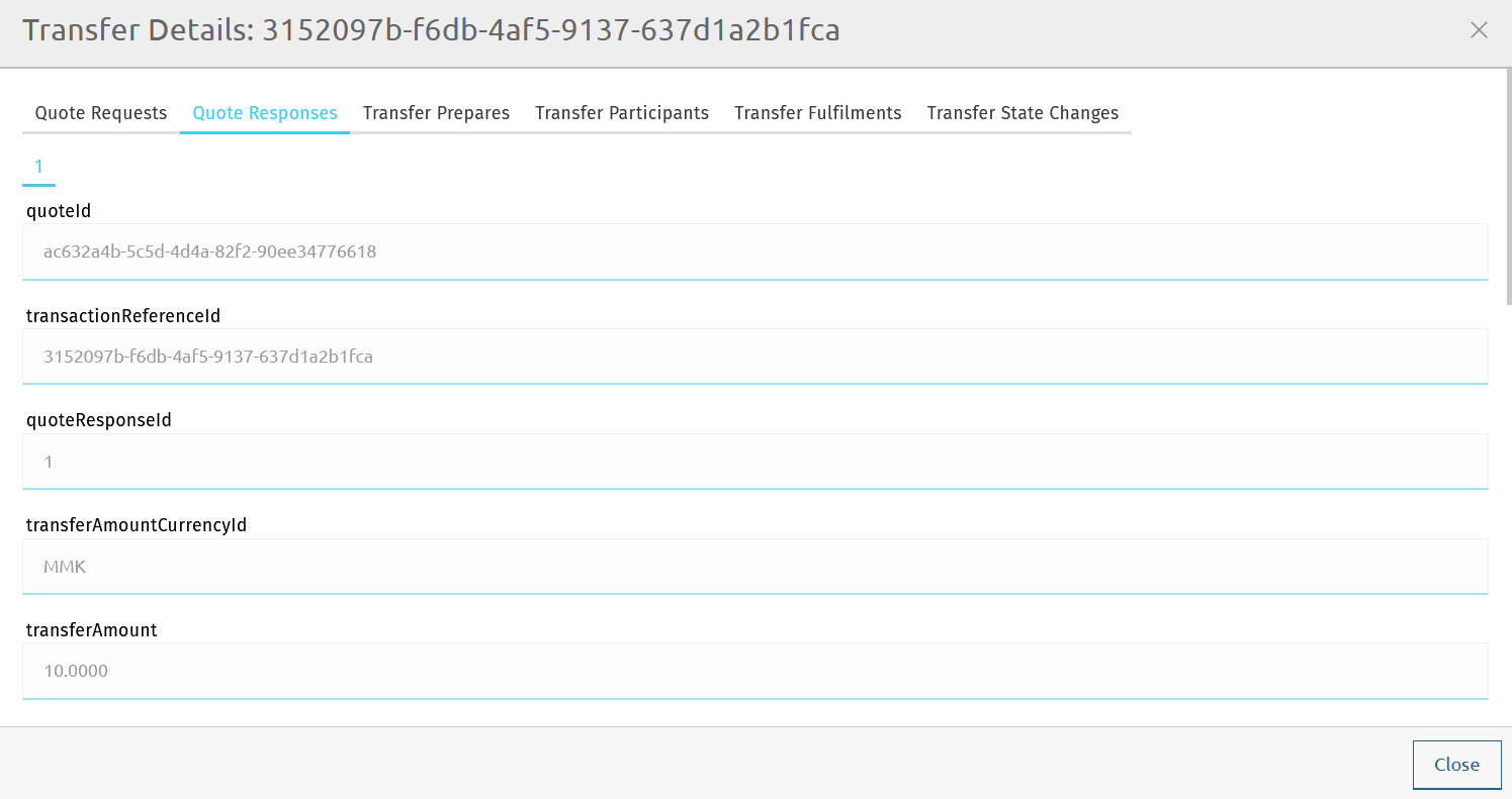 Transfers without quotes (that is "add/withdraw funds" transfers and settlement transfers) will display details for the following fields only: Transfer ID, Timestamp, Amount, Currency, Status.