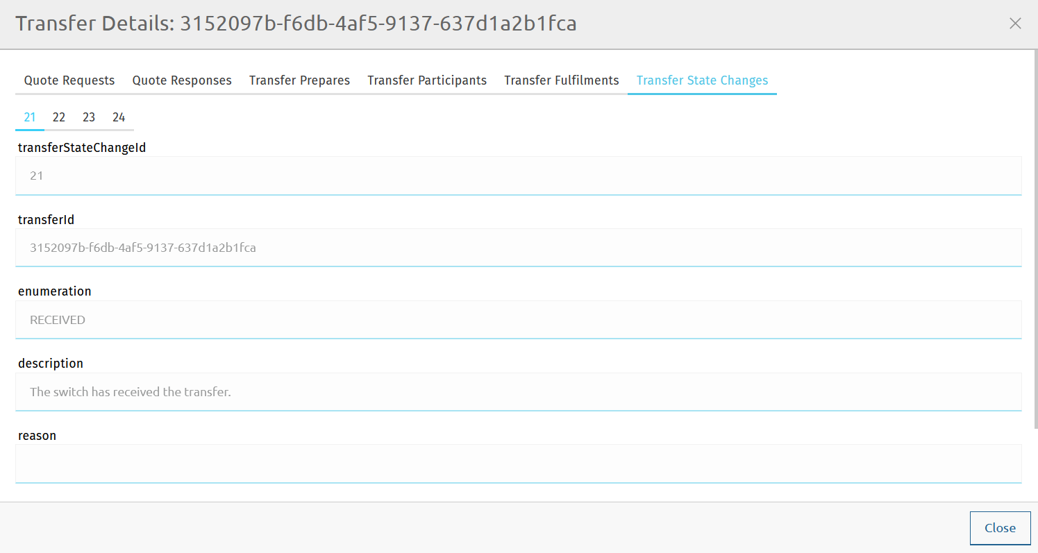 • transferStateChangeId: The unique identifier of the transfer state.