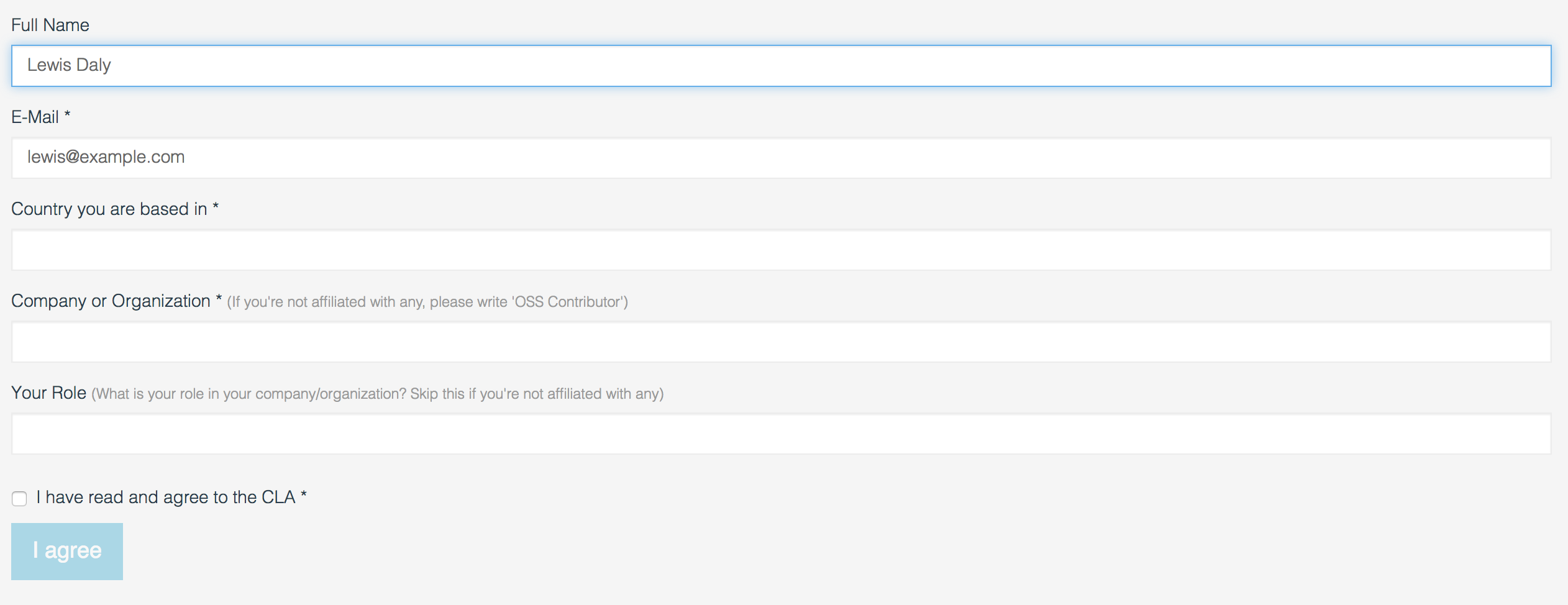 To ensure every developer has signed the CLA, we use CLA Assistant (opens new window), a well maintained, open source tool which checks to make sure that a contributor has signed the CLA before allowing a pull request to be merged.